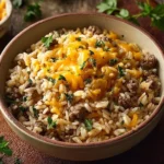 Cheesy Hamburger Rice Casserole is a warm and comforting dish perfect for any family meal. It combines savory ground beef, fluffy rice, and gooey cheese into one delicious casserole. This dish is simple to prepare, making it a great option for busy weeknights or weekend gatherings.
